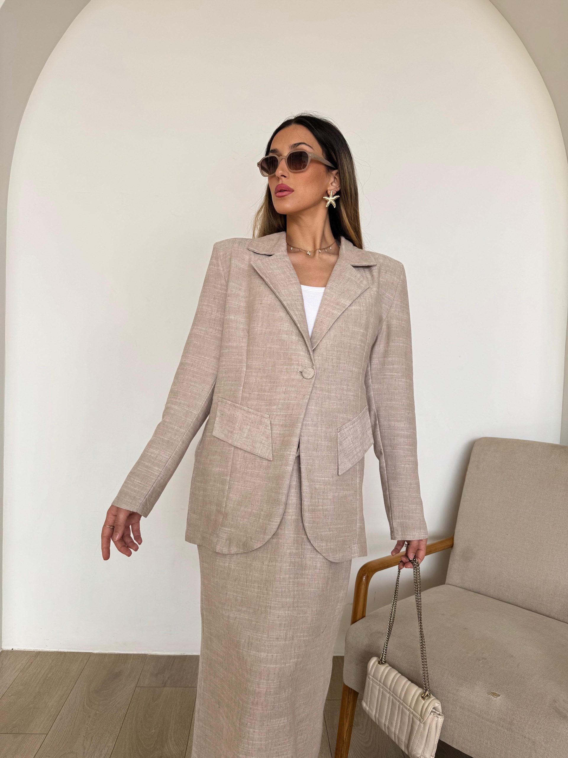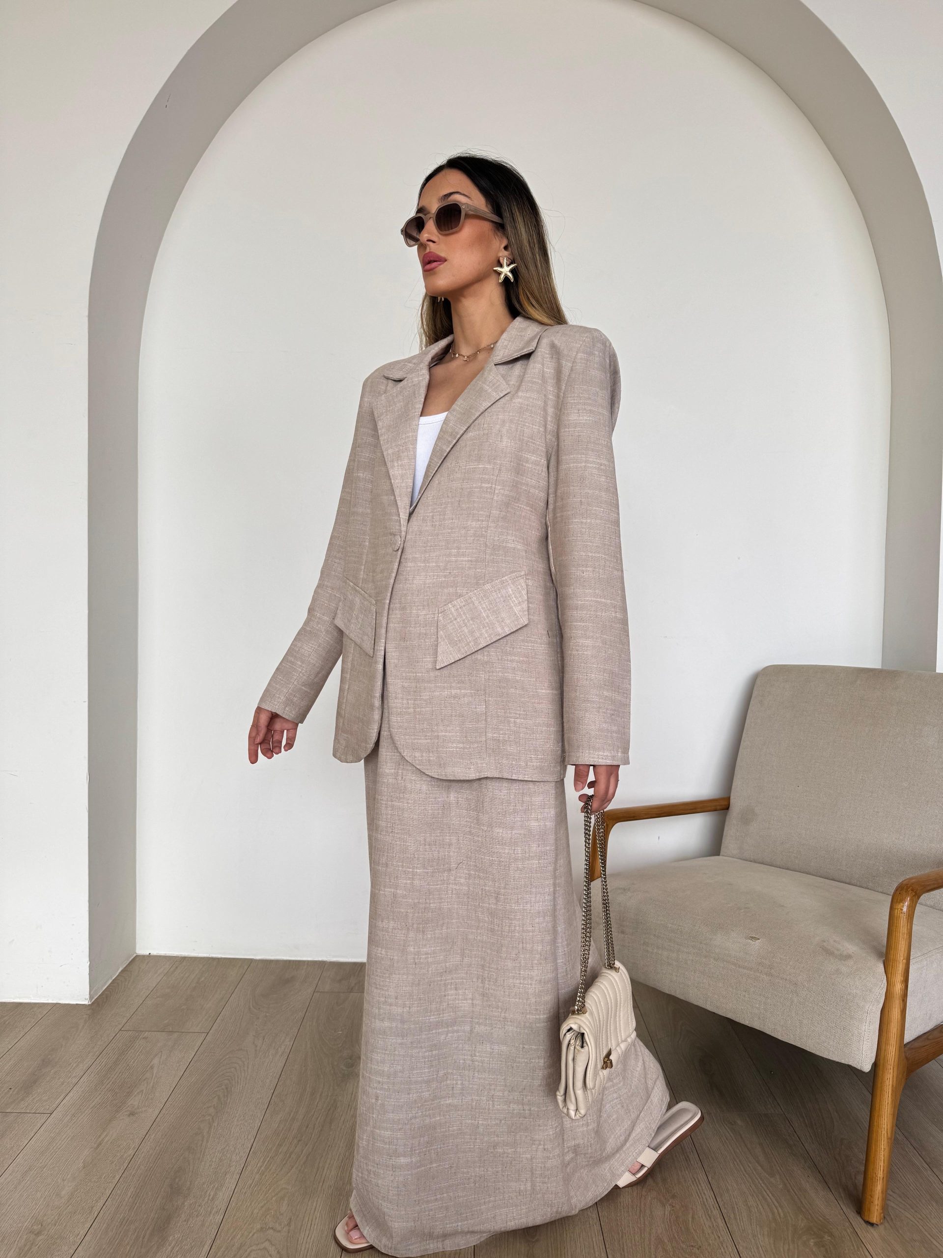 חליפה חצאית פשתן