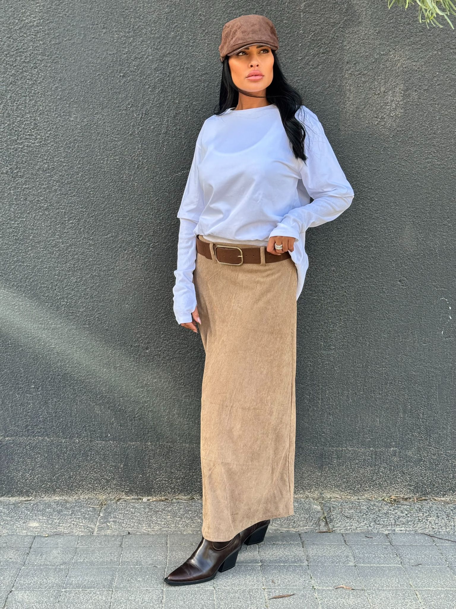 עמוד הבית קולקצייה צנועה חצאית קורדרוי+חגורה